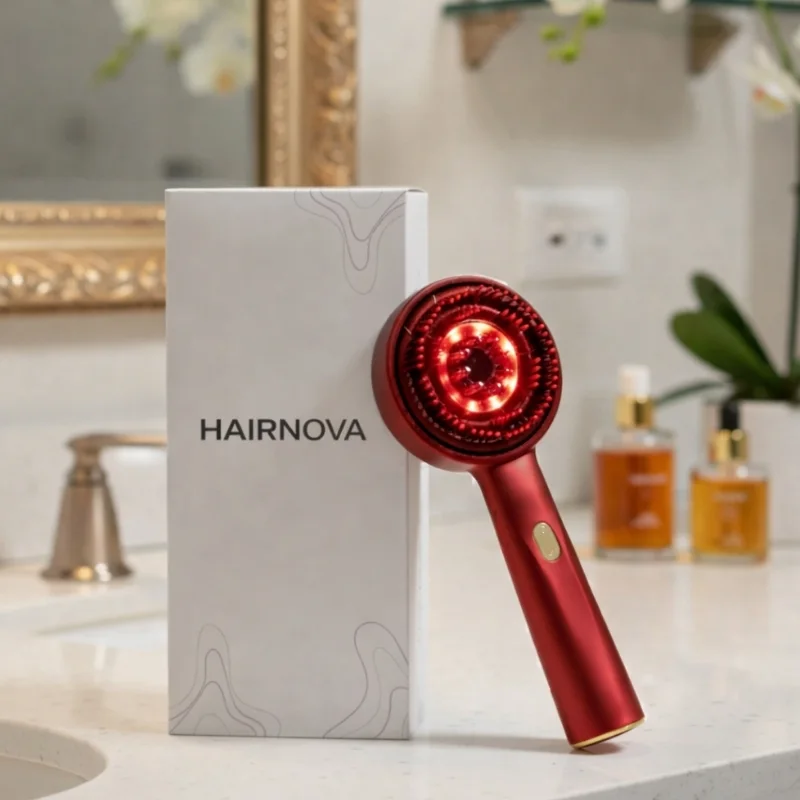 تعتمد فعالية فرشاتنا على تقنية التحفيز الضوئي (Photobiomodulation) مع تحفيز ميكانيكي لفروة الرأس.